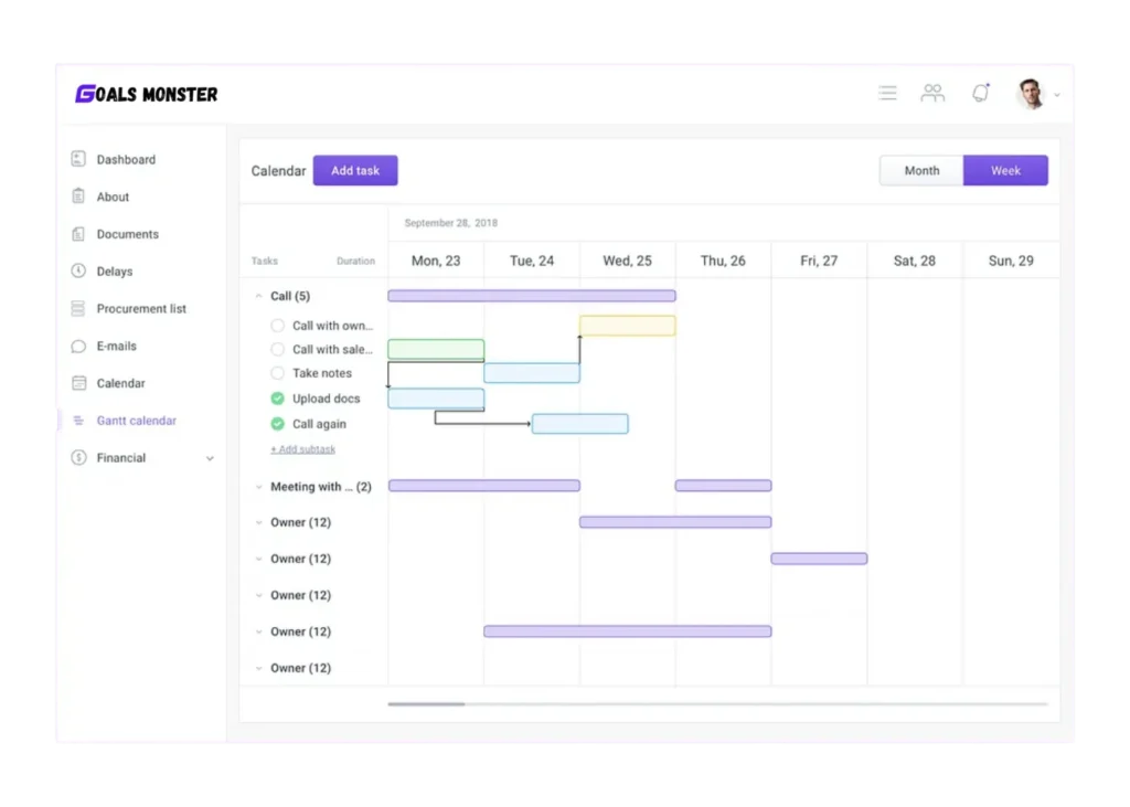 Plan and visualize your project’s timeline using Gantt charts. GoalsToReach’s Gantt charts provide a clear view of project phases, tasks, and deadlines, helping you manage time effectively.